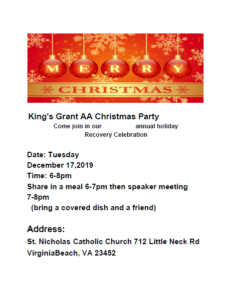 King’s Grant AA Christmas Party – Download Flier